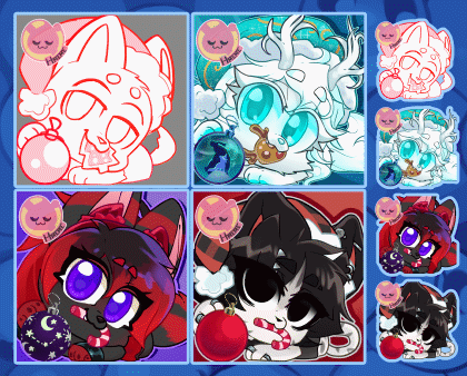 Listing with all my Cwistmas' YCHs (Your character here)Disclaimer: Quality of the images is VERY bad due to the 2mb files' limitation on carrd. You can find full quality images on my Twitter (@HmemeUwU) and FurAffinity (HMeme)